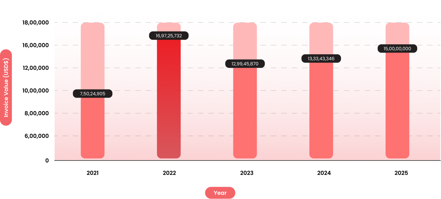 Invoice Value (USD$) generated from DML Group’s core export portfolio.